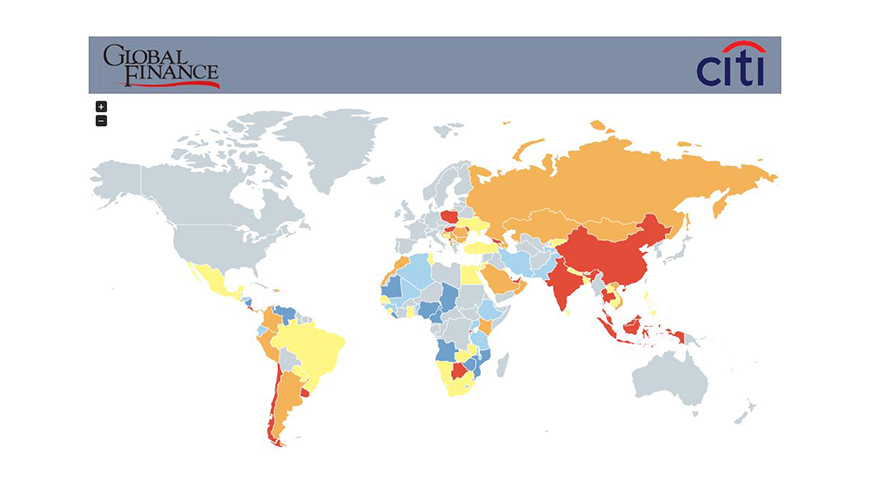 Global Finance provides its assessment based on the following five economic components: GDP Growth Forecast, Change in FDI, Competitiveness Score, Corruption Perceptions Score and Ease of Doing Business Rank.