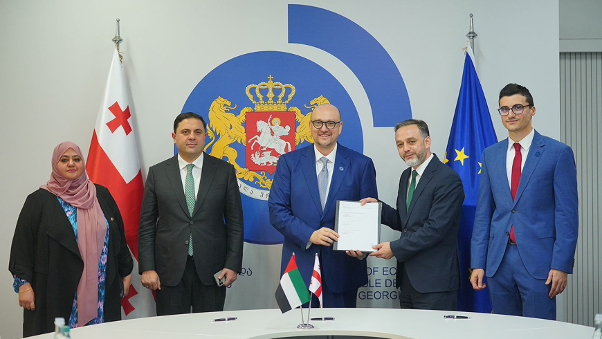 After the signing ceremony, the First Deputy Minister of Economy and Sustainable Development of Georgia, Romeo Mikautadze, held a meeting with the representatives of Masdar. The meeting and the signing ceremony were also attended by Munira Almarzooqi, Acting Ambassador of the United Arab Emirates to Georgia.