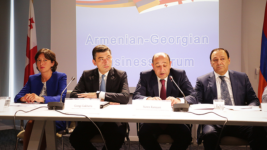 Organized by the Georgian and Armenian Chamber of Commerce and Industry, a joint Business Forum was held in Yerevan and over 150 Armenian and Georgian companies took part in the event. The Minister of Economy and Sustainable Development of Georgia Giorgi Gakharia and the Minister of Economic Development and Investment of Armenia Suren Karayan addressed the Forum participants. The Deputy Ministers of Economy and Sustainable Development of Georgia Nino Javakhadze and Giorgi Cherkezishvili, Deputy CEO of the Partnership Fund Natia Turnava, the Head of the Chamber of Commerce and Industry of Georgia Nino Chikovani and other officials also attended the Forum.