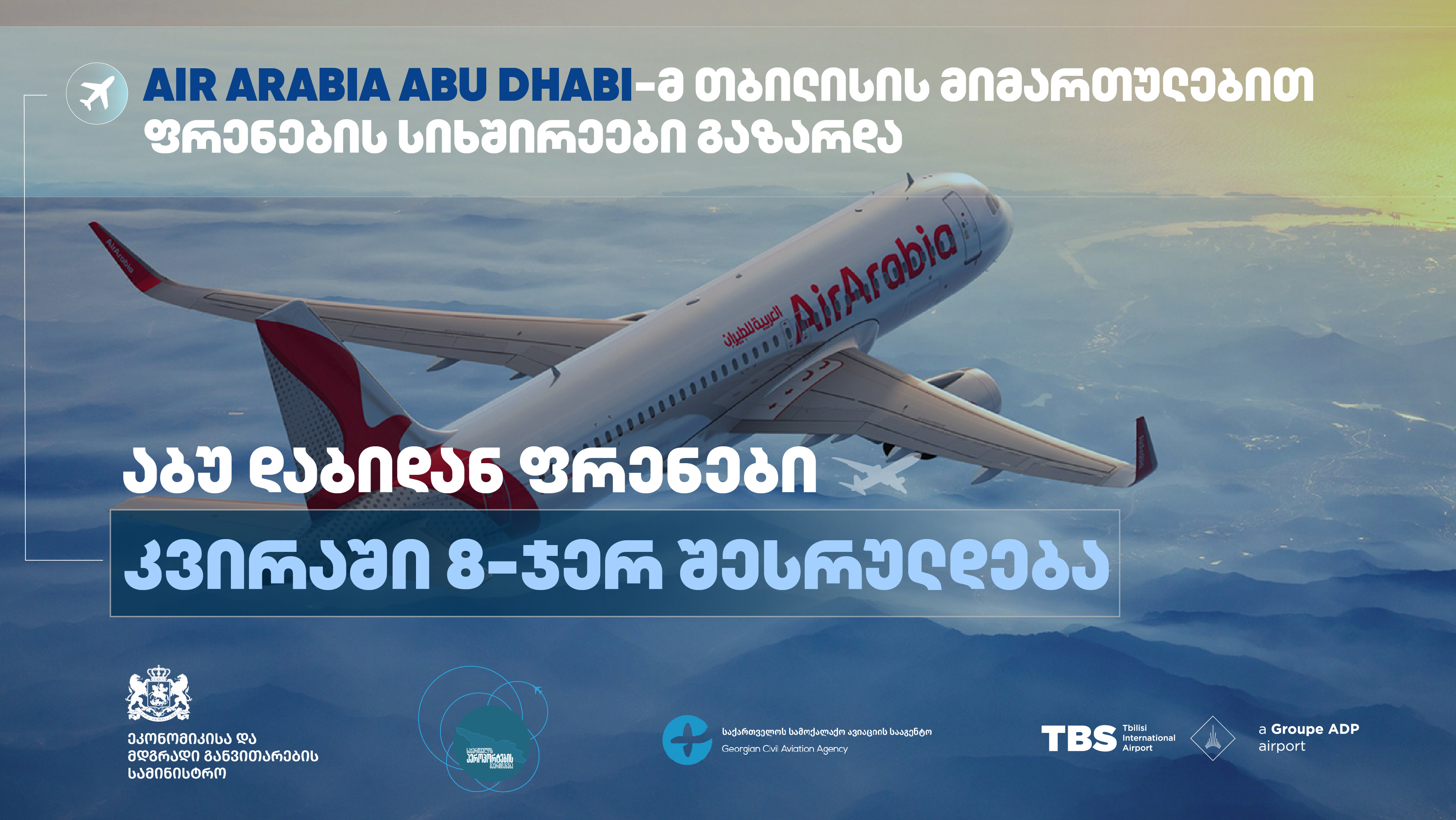 The increase in flight frequency by Air Arabia Abu Dhabi to Tbilisi once again highlights the success of Georgia’s aviation policy, the dynamic development of the tourism industry, and the country’s correct positioning in international markets. This regular air travel will boost connectivity between the capitals of Georgia and the United Arab Emirates and will ensure the deepening of economic, tourist, and investment ties. The increased frequency of flights will also promote Georgia and attract more high-spending tourists to the country, which will positively affect the revenue generated from tourism.
