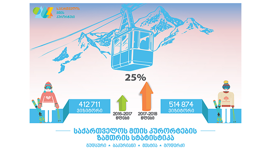 Mountain Resorts Development Company of the Ministry of Economy and Sustainable Development of Georgia has finished the 2017/2018 mountain ski season. In 2017-2018, the number of visitors is increased by 25% compared to the winter ski season of 2016-2017.