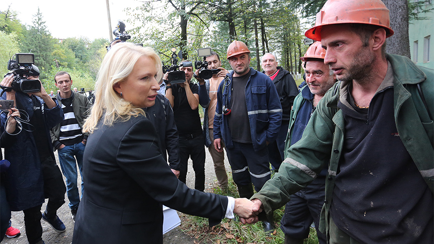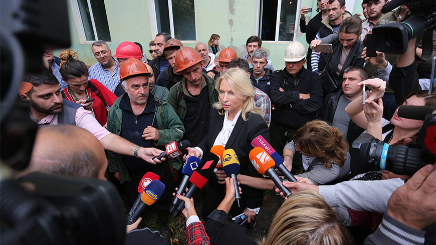 ეკონომიკისა და მდგრადი განვითარების მინისტრი ნათია თურნავა პრემიერ-მინისტრ გიორგი გახარიას დავალებით ტყიბულში გაფიცულ მეშახტეებსა და კომპანია „საქნახშირი“ წარმომადგენლებს შეხვდა.