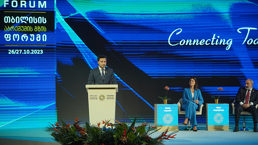 „თბილისის აბრეშუმის გზის ფორუმმა“ მუშაობა დაიწყო - ღონისძიების გახსნის ცერემონია თბილისის ოპერისა და ბალეტის სახელმწიფო თეატრში შედგა, გახსნით პანელში საქართველოს, სომხეთის, აზერბაიჯანის და მონტენეგროს პრემიერ-მინისტრების მონაწილეობით. ფორუმი საქართველოს პრემიერ-მინისტრ ირაკლი ღარიბაშვილის დაფუძნებულია და მისი პატრონაჟით ტარდება. საქართველოს პრემიერ-მინისტრი დღეს გახსნით პანელზე სიტყვით გამოვიდა, სადაც მნიშვნელოვან რეგიონულ და გლობალურ პოლიტიკურ და ეკონომიკურ საკითხებზე ისაუბრა.