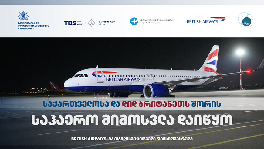 საქართველოსა და დიდ ბრიტანეთს შორის პირდაპირი საჰაერო მიმოსვლა დაიწყო - British Airways-მა თბილისის საერთაშორისო აეროპორტში პირველი რეისი შეასრულა